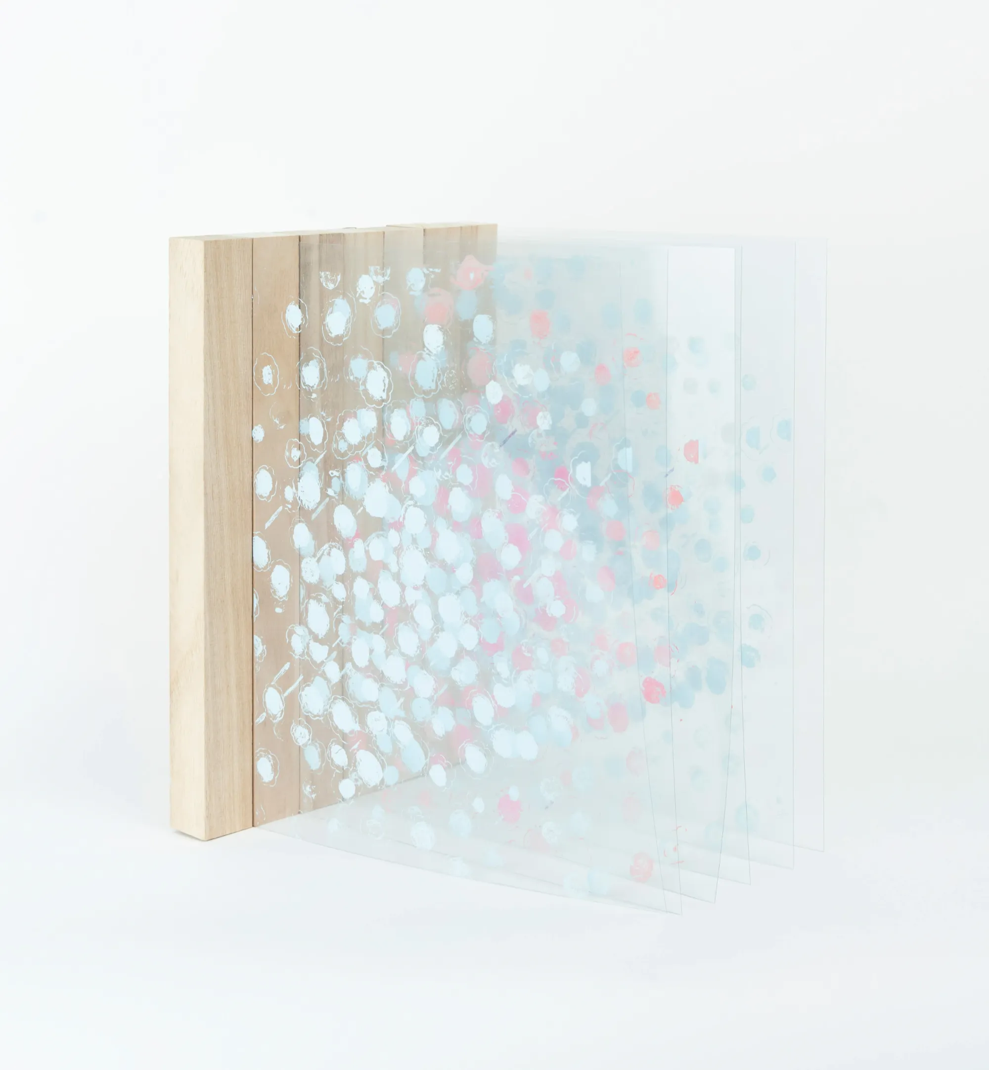 희미한 조각들-설치, 2022, silkscreen on film, 30 x 30 x 30 cm